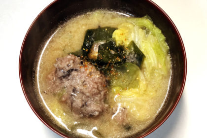 [具材]いわしのつみれ 白菜 乾燥わかめ [吸い口]七味唐辛子 [お味噌]とんばら生みそ+白味噌 [おだし]こんぶ いわしのすり...